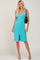 A ribbed, solid hue midi dress with a scoop neckline and functioning snap front buttons.