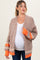 Stay cozy and stylish throughout your pregnancy with our Beige Chunky Knit Stripe Detail Maternity Sweater Cardigan. Crafted from a soft, warm blend, this cardigan features bold orange and neutral stripe accents along the cuffs and hem for a trendy, eye-catching look. The relaxed, open-front design allows for easy layering over your maternity essentials, while the spacious pockets provide convenience on the go. Perfect for cool days, this cardigan combines comfort and fashion, adapting gracefully to your growing bump. Pair it with your favorite jeans or leggings for an effortlessly chic maternity outfit.