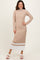 Elevate your wardrobe with this Beige Colorblock Hem Mock Neck Sweater Dress. Crafted from a cozy rib-knit fabric, this long-sleeve midi dress features a chic mock neck and subtle vertical ribbing that flatters every figure. The standout colorblock hem in white adds a modern touch to the neutral beige tone, perfect for both casual days and stylish evenings. Pair it with sandals or boots for versatile looks throughout the seasons. Comfortable, elegant, and effortlessly trendy – this sweater dress is a must-have staple for your collection. Available in multiple sizes.