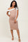 Beige Colorblock One Shoulder Draped Maternity Midi Dress