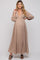 Beige Deep V-Neck Smocked Waist Maternity Maxi Dress