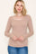 Beige Fine Rib Scoop Neck Long Sleeve Top