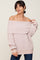 A solid off shoulder sweater with a foldover neckline in a chunky popcorn knit material.