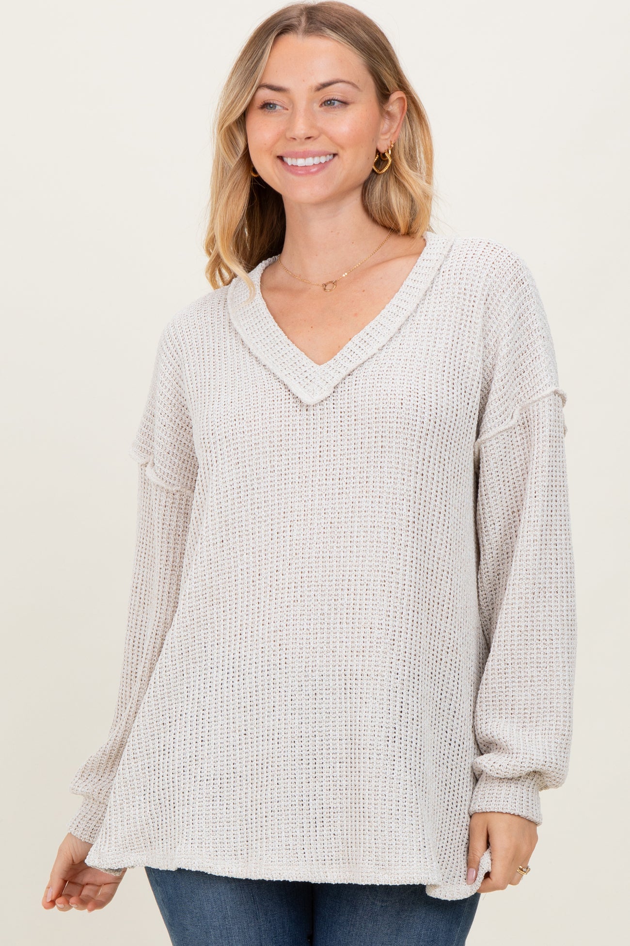 Stay cozy and stylish with our Beige Long Puff Sleeve Solid Oversized Maternity Top. Crafted with a soft, breathable knit fabric, this top offers ultimate comfort and room to grow throughout your pregnancy. The relaxed oversized fit and subtle puff sleeves add a trendy touch, while the classic V-neckline enhances femininity. Perfect for layering or wearing alone, this versatile piece pairs effortlessly with jeans or leggings for casual everyday wear. Embrace comfort without sacrificing style during your maternity journey with this must-have wardrobe staple. Available in multiple sizes to accommodate your changing shape.