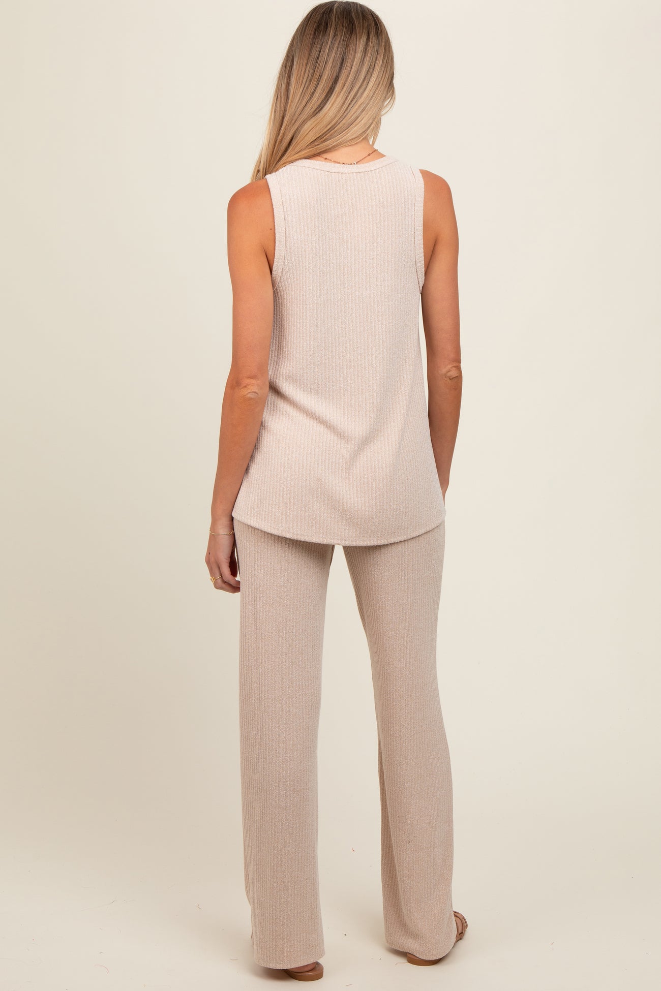 Beige Rib Knit Tank and Pant Maternity Set