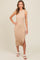 Beige Ribbed Side Slit Sleeveless Midi Dress