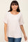 A solid hued blouse featuring a rounded neckline and short sleeves with a rolled cuff.