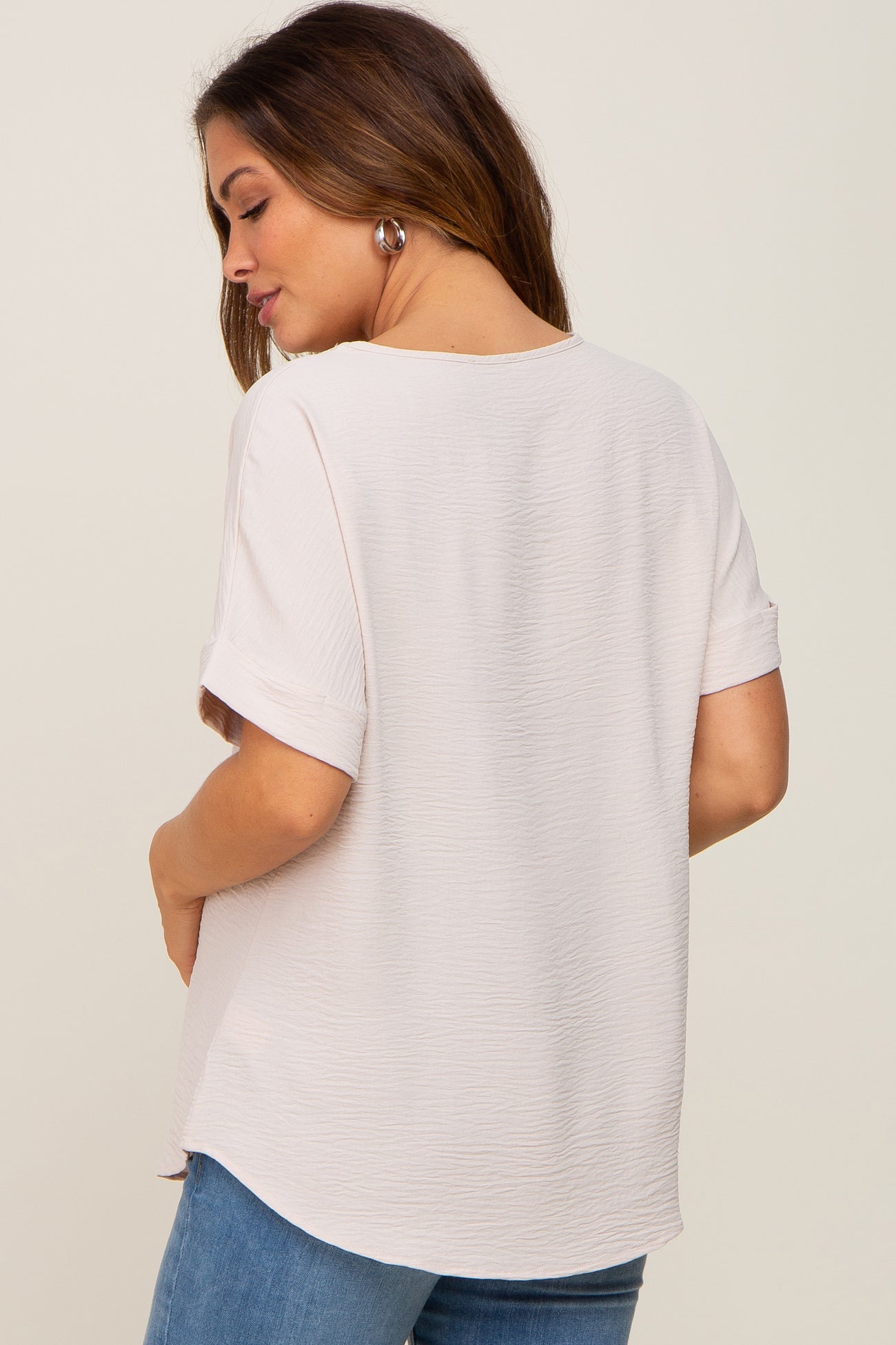 Beige Rolled Cuff Short Sleeve Maternity Blouse