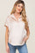A satin maternity top with a v-neckline, a collar, short dolman sleeves, and a rounded hi-lo hemline.
