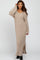 A sweater knit maxi dress featuring a rounded neckline, long sleeves and side slits.