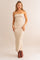 Beige Strapless Fold Over Lettuce Trim Maxi Dress