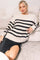 A striped knit, oversized sweater featuring a crew neckline, long sleeves and side slits.