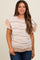 Beige Textured Stripe Ruffle Short Sleeve Maternity Sweater