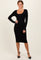 Black Bow Trim Neckline Long Sleeve Midi Dress