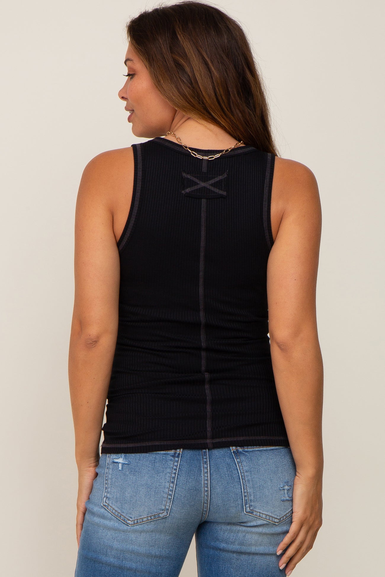 Black Button Accent Ribbed Maternity Tank