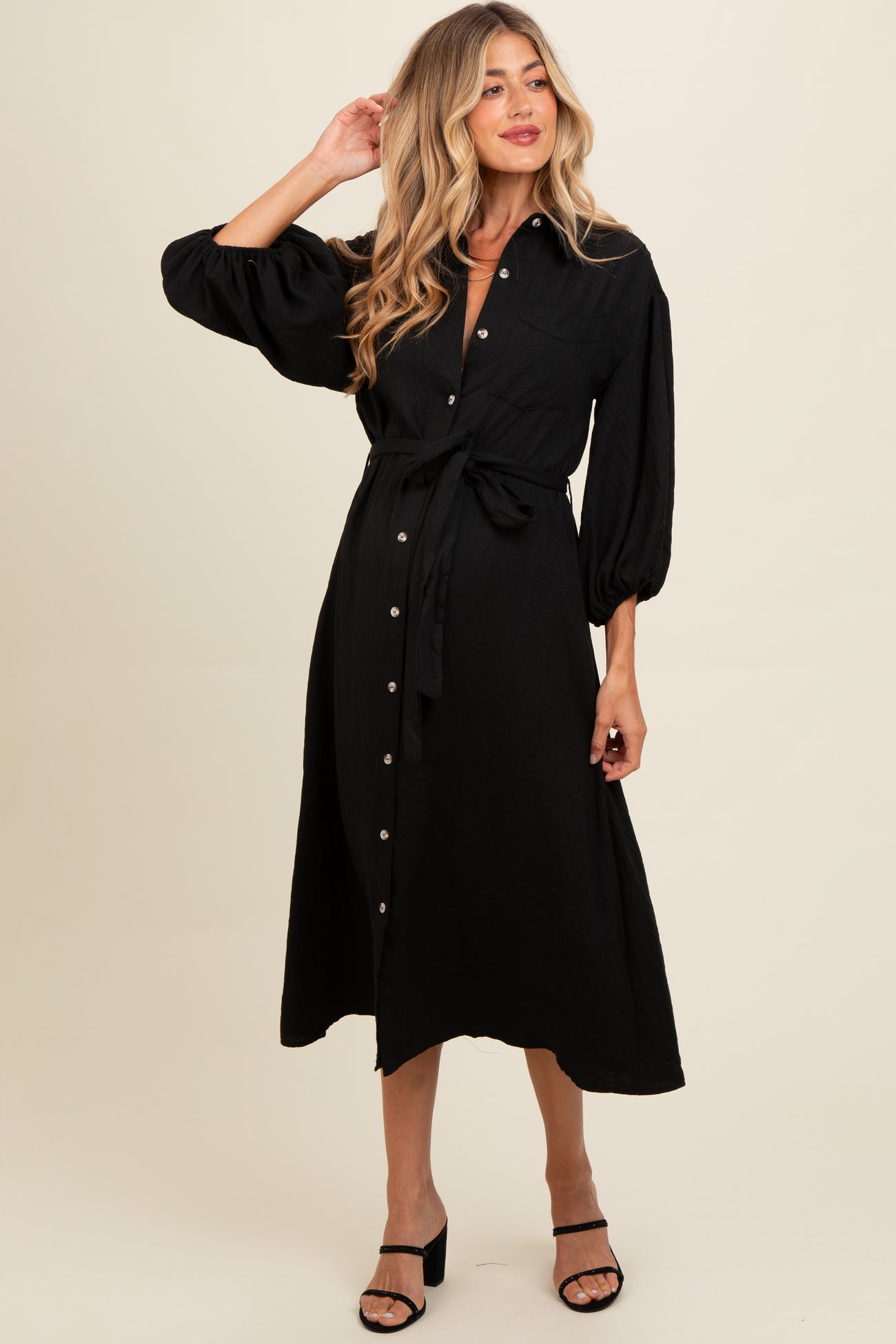 Black Button Down Maternity Midi Dress