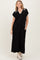 Black Collared Stitch Detail Short Sleeve Midi Dress