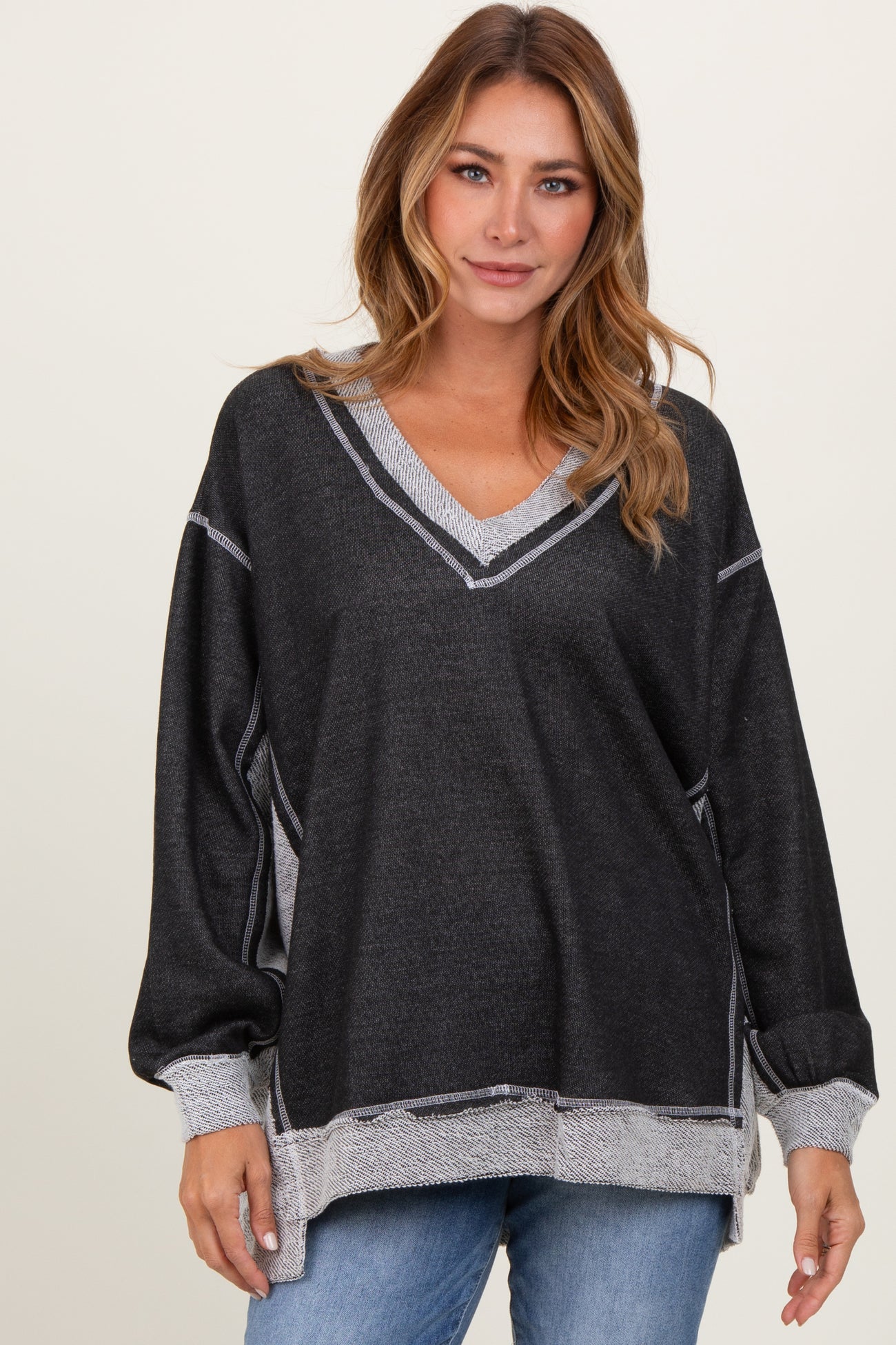 Stay cozy and stylish during your pregnancy with our Black Contrast French Terry Maternity Long Sleeve Top. Crafted from soft, breathable French terry fabric, this top offers gentle stretch to comfortably accommodate your growing bump. The chic black base features contrasting light gray trim along the V-neckline, cuffs, and hem, adding a modern touch to your maternity wardrobe. Its relaxed fit and dropped shoulders provide ease of movement and a flattering silhouette. Perfect for casual days or layering, this versatile top keeps you feeling comfortable and looking effortlessly trendy throughout your pregnancy journey. Machine washable for easy care.