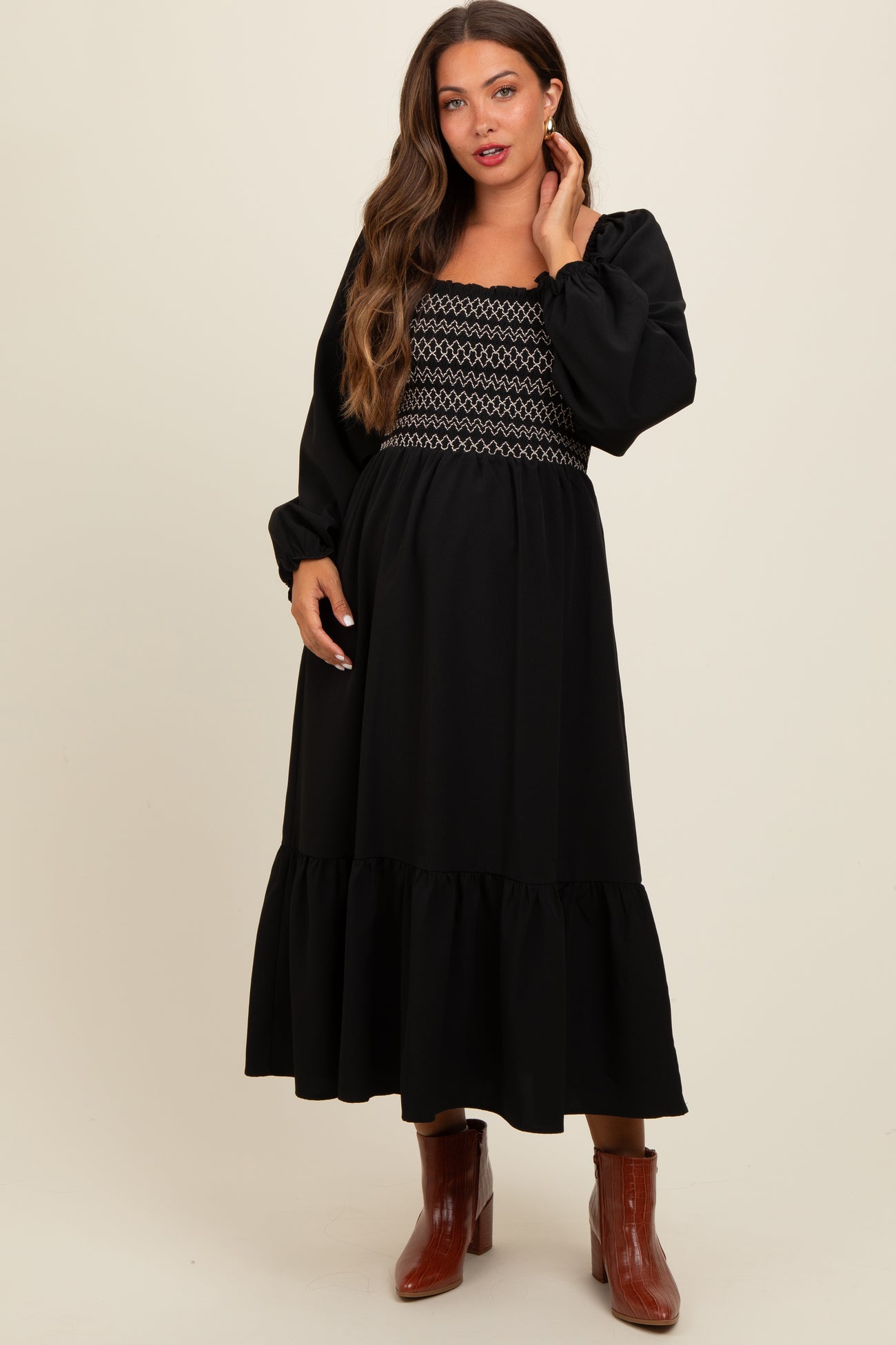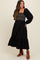 Black Contrast Smocked Balloon Sleeve Maternity Midi Dress