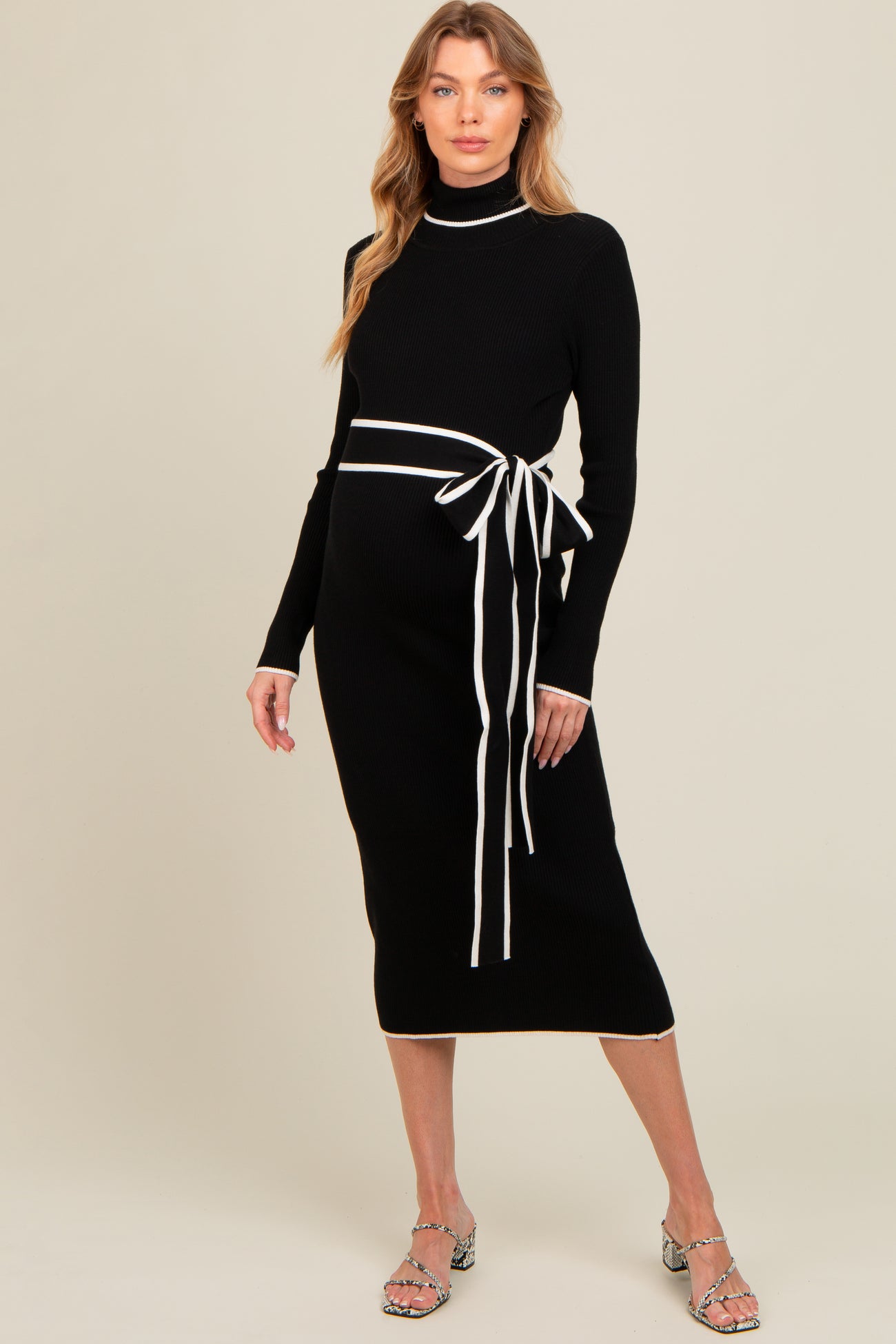 Black Contrast Trim Turtleneck Maternity Sweater Dress