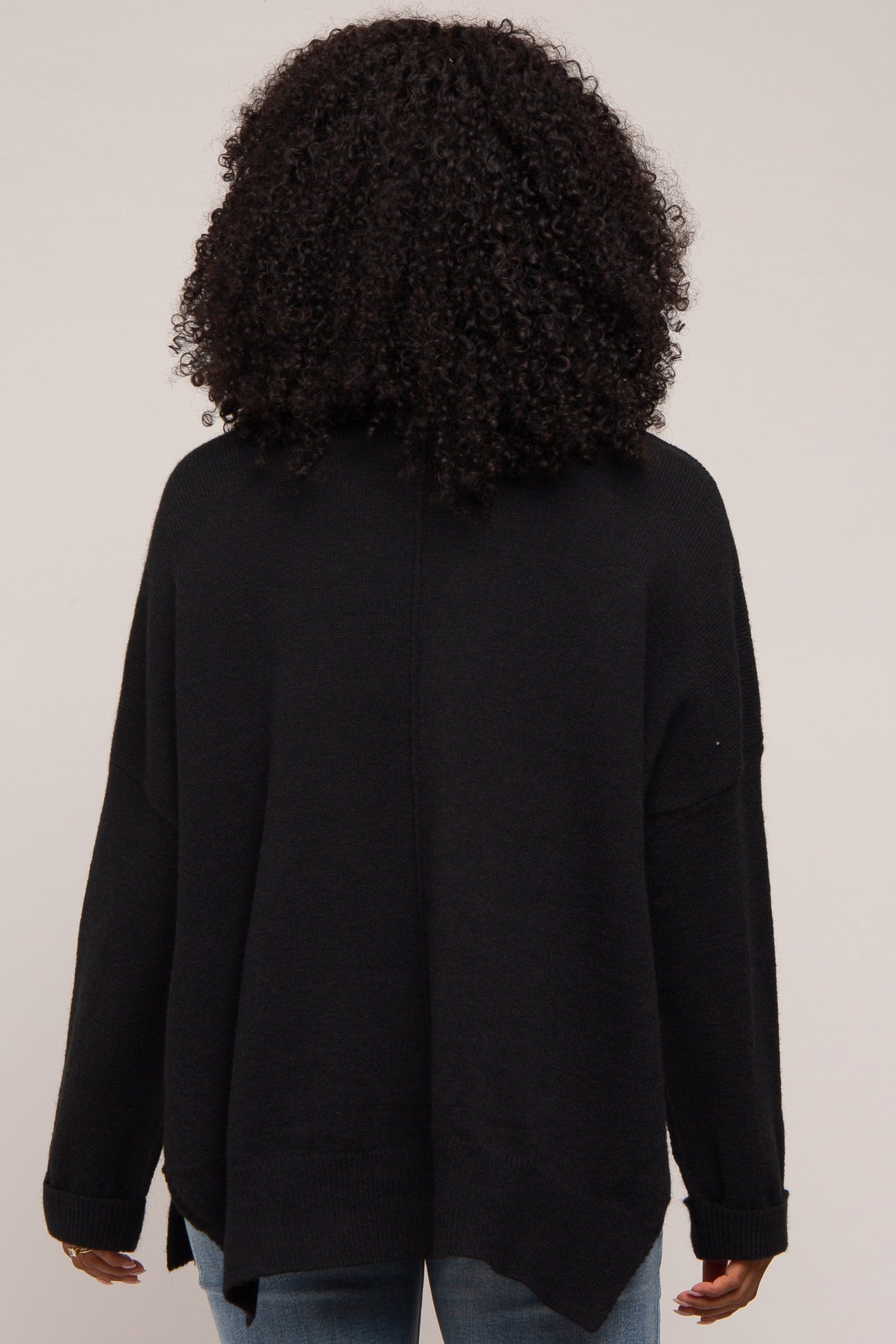 Black Dolman Sleeve Side Slit Sweater