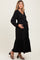 Black Elegant Long Sleeve Waist Tie Maternity Midi Dress