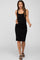 A solid sleeveless maternity midi fitted dress with a scoop neckline.
