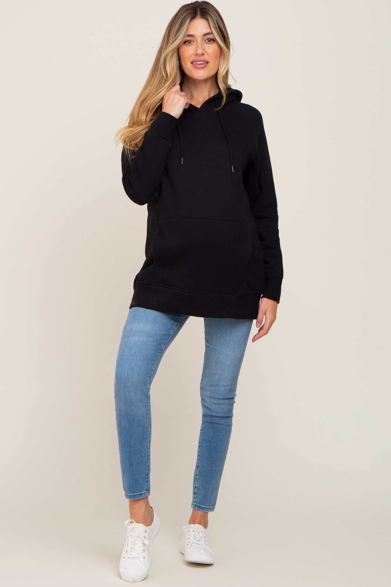 Black Fleece Front Pocket Maternity Hoodie