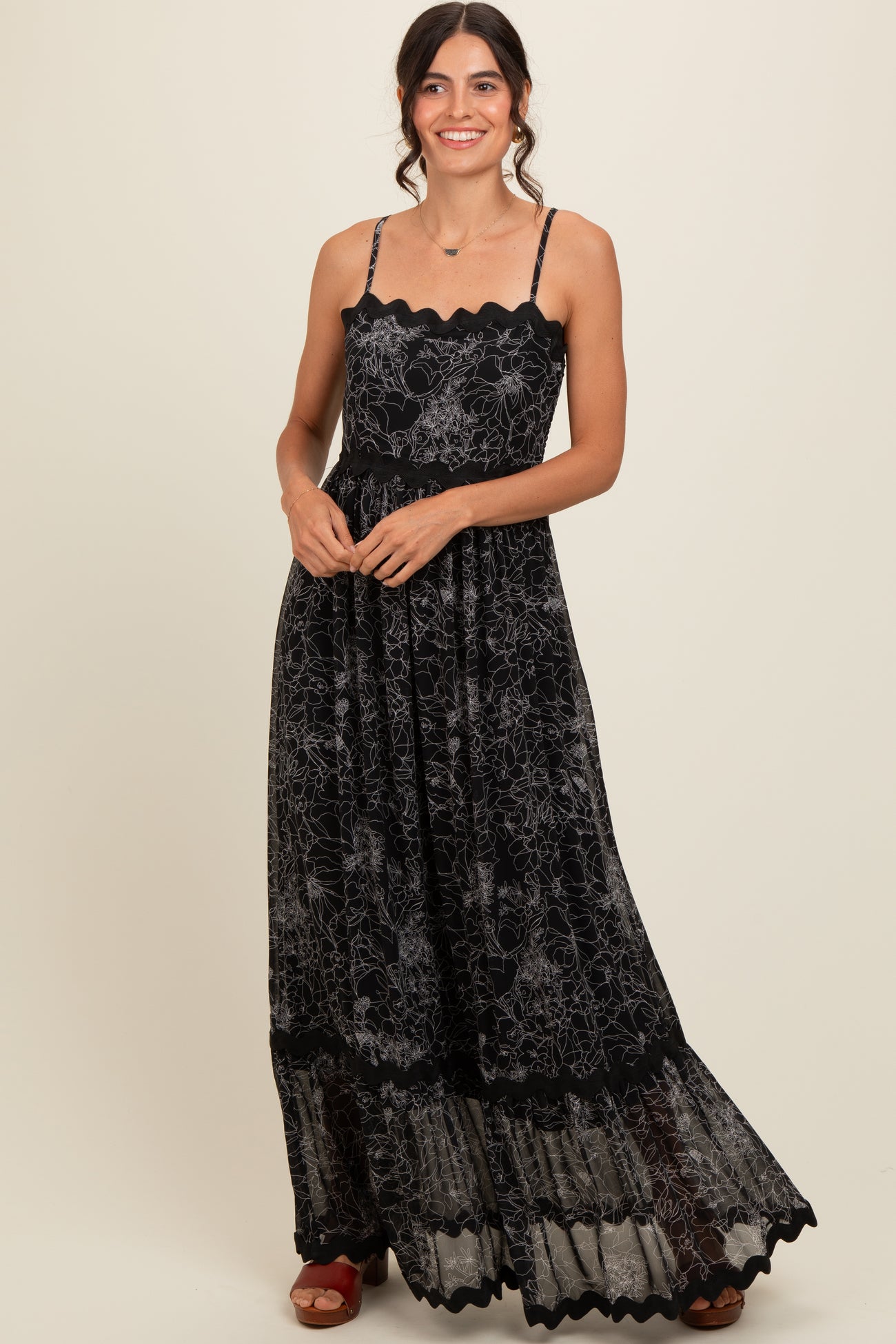 Stay stylish and comfortable throughout your pregnancy in our Black Floral Contrast Trim Maternity Maxi Dress. Featuring a flattering empire waist and soft, stretchy fabric, this dress adapts beautifully to your changing shape. The elegant black backdrop is adorned with vibrant floral prints, while unique contrast trim adds a chic, modern touch. Perfect for both casual days and special occasions, its flowy silhouette ensures ease of movement and all-day comfort. Pair with sandals or dress it up with heels for a versatile look you’ll love before and after baby arrives. Shop your new favorite maternity maxi dress today!