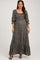 A floral long sleeve maternity dress with a criss cross back and a square neckline.