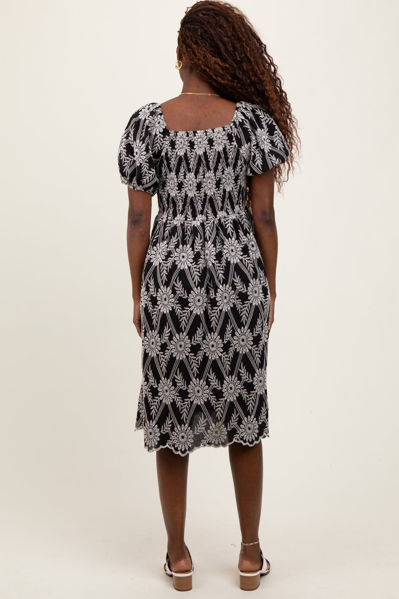 Black Floral Embroidered Square Neck Dress