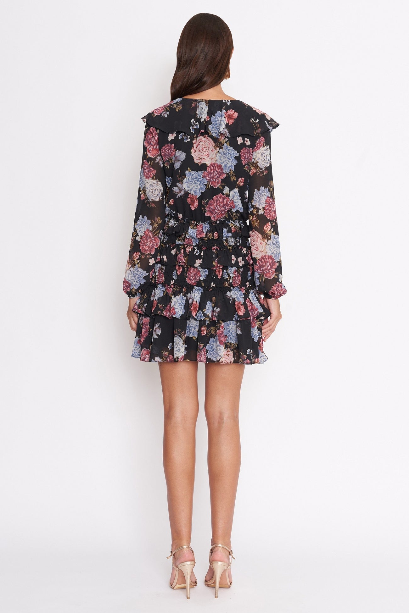 Black Floral Long Sleeve Ruffle Dress