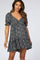 A floral print maternity mini dress featuring ruffle accents, short puff sleeves and a v-neckline.