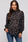 A plisse, floral maternity top featuring a smocked ruffle accent mock neck, long sleeves with smocked cuffs, and a back keyhole. Top is semi sheer.