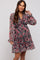 Details A floral maternity dress with a ruffle trimmed v-neckline, long semi sheer cinched sleeves, a ruffle accent elastic waist, and a gathered bottom tier. Content + Care