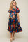 Black Floral Satin Smocked Short Sleeve Maternity Midi Dress