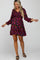 A floral print maternity dress featuring a v-neckline, long sleeves with a ruffle cuff, a smocked elastic front and a ruffle hem.