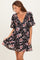 Black Floral V-Neck Puffed Sleeve Mini Dress