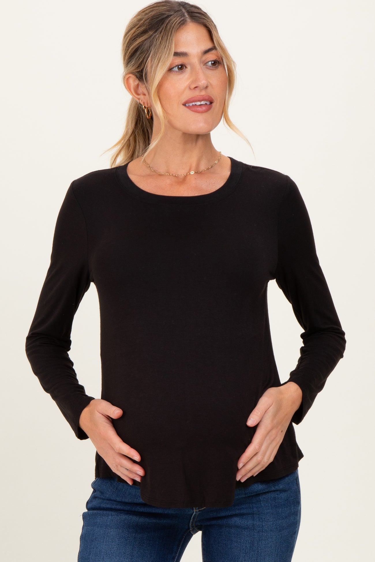Black Flowy Round Hem Maternity Long Sleeve Top