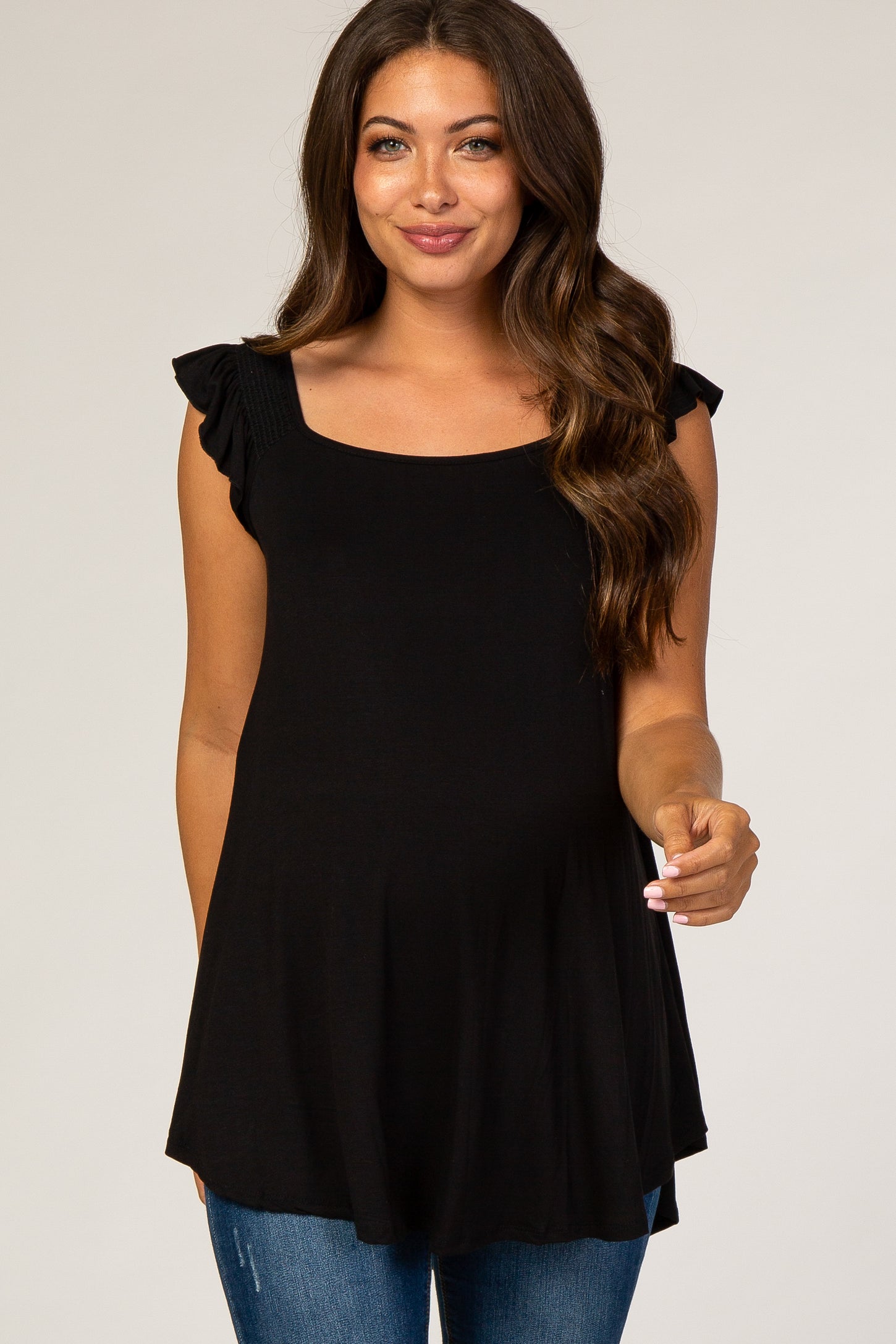 Black Flutter Sleeve Maternity Top