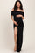 Black Foldover Off Shoulder Ruched High Slit Maternity Maxi Dress