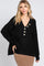 A sweater featuring a v-neckline, a henley placket, long sleeves and side slits.