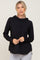 A solid hued active top featuring a hooded neckline with an adjustable drawstring, long sleeves with thumb slits and a curved hem.