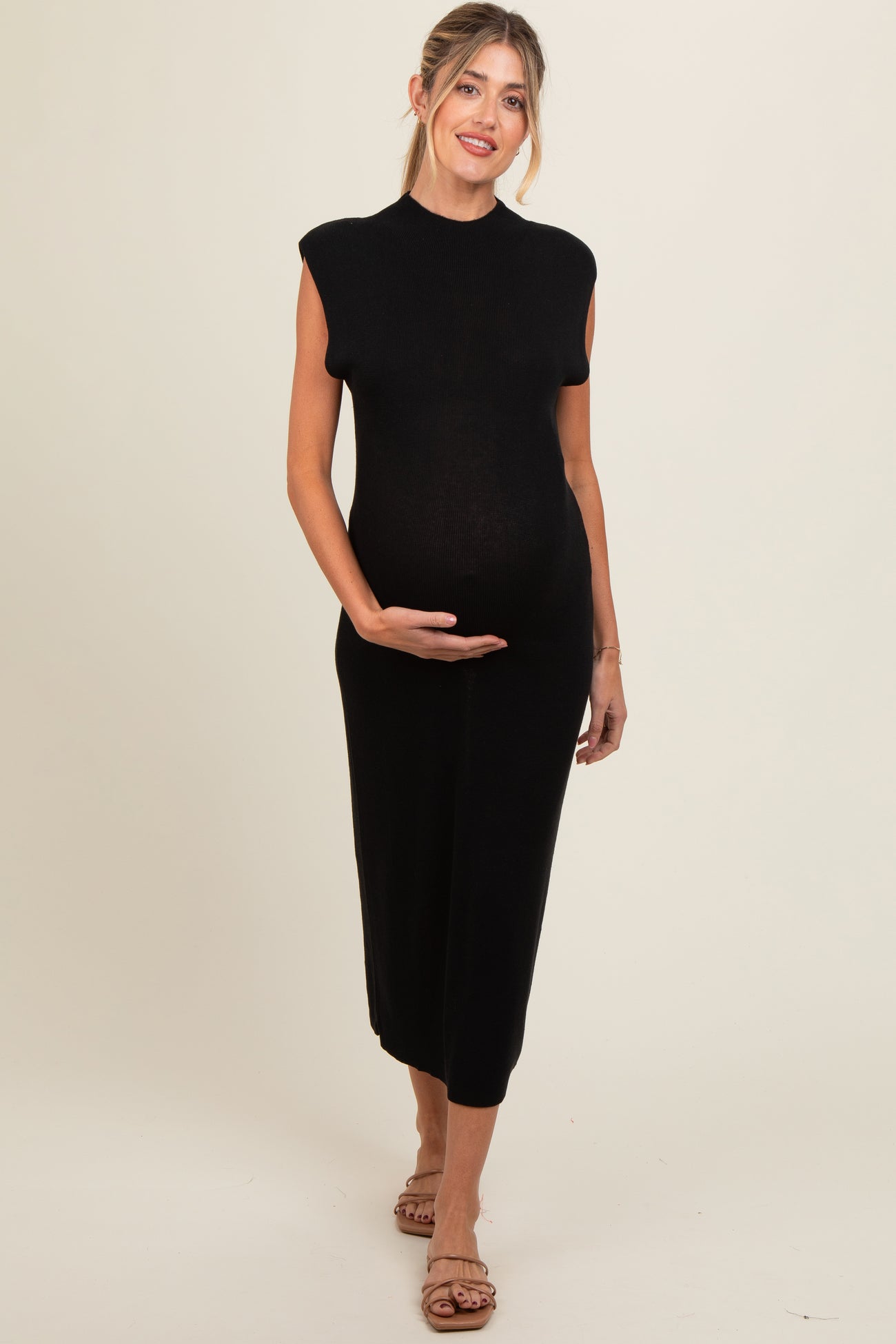 Black Knit Mock Neck Maternity Midi Dress