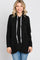 An ultra soft knit nursing top featuring fleece lining, an adjustable drawstring hood, long sleeves and a layered front for easy access.