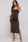 Black Metallic Ribbed Cut Out Back Maternity Midi Dress