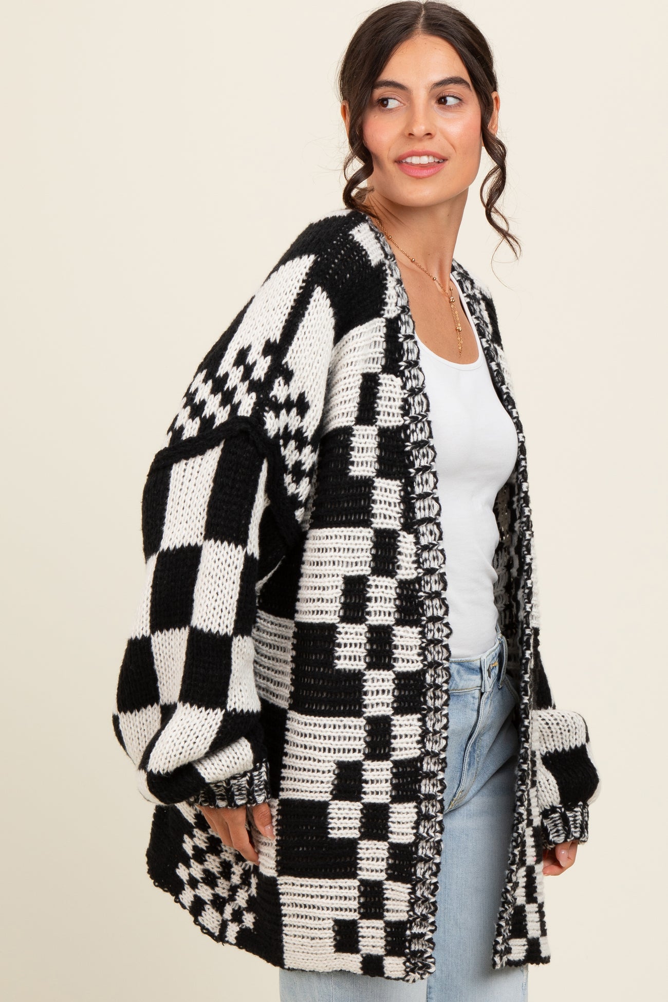 Stay cozy and stylish with our Black Mixed Check Pattern Chunky Cardigan. Crafted with a bold black and white check design, this oversized cardigan features a chunky knit texture that adds warmth and a trendy edge to any outfit. The open front and balloon sleeves with ribbed cuffs create a relaxed, comfortable fit perfect for layering over your favorite tees or tops. Versatile and eye-catching, this cardigan pairs effortlessly with jeans or leggings for everyday wear. Elevate your fall and winter wardrobe with this statement piece that’s both chic and cozy.