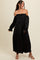 Black Off Shoulder Satin Pleated Bodice Maxi Dress