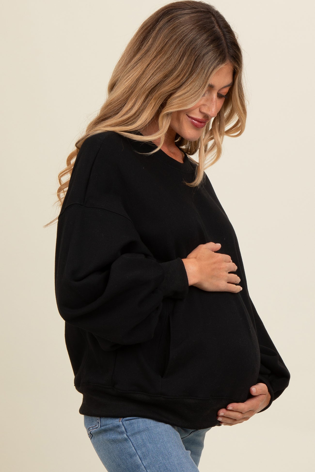 Black Oversized Balloon Sleeve Maternity Sweatshirt