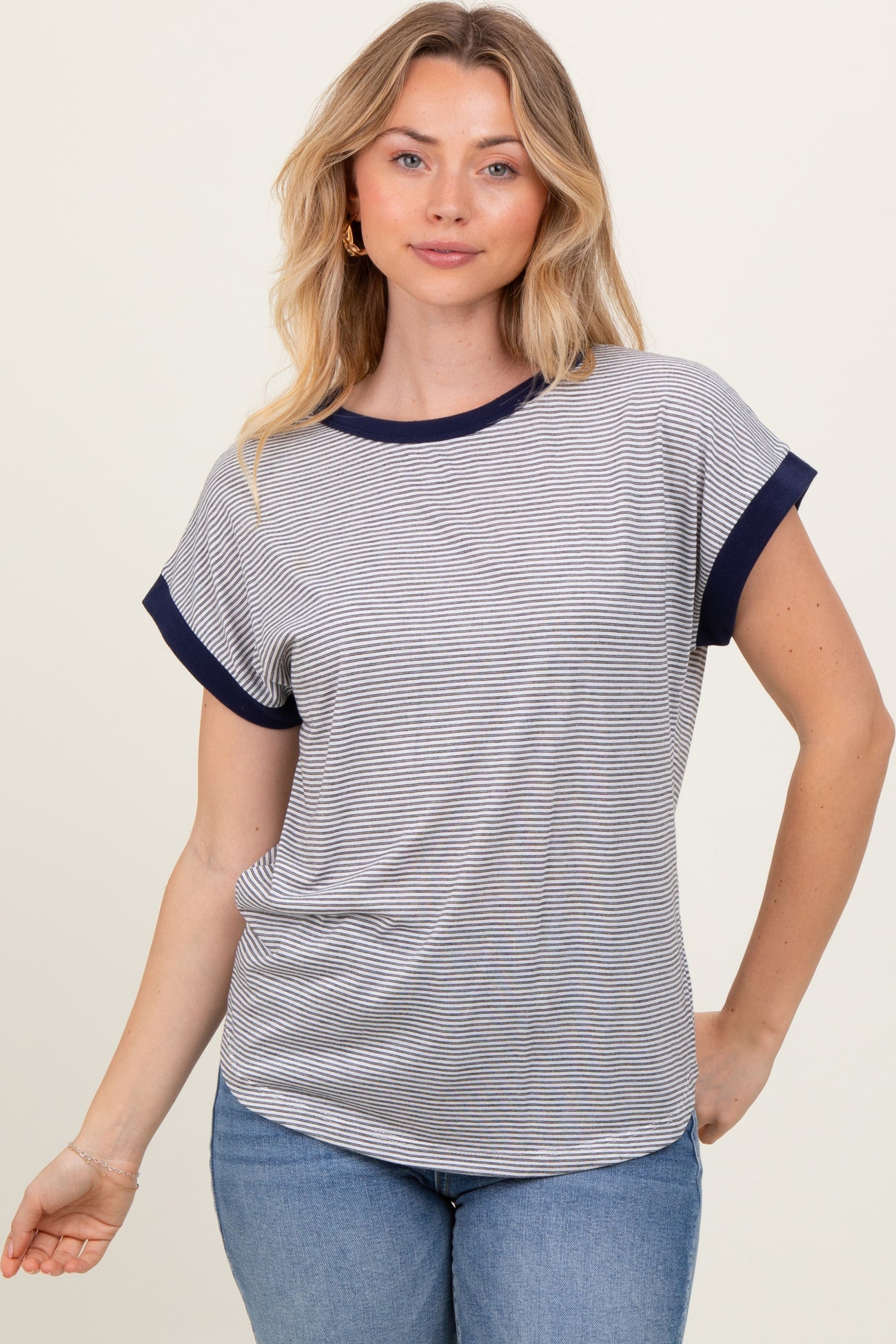 Black Pinstripe Contrast Trim Short Sleeve Maternity Tee